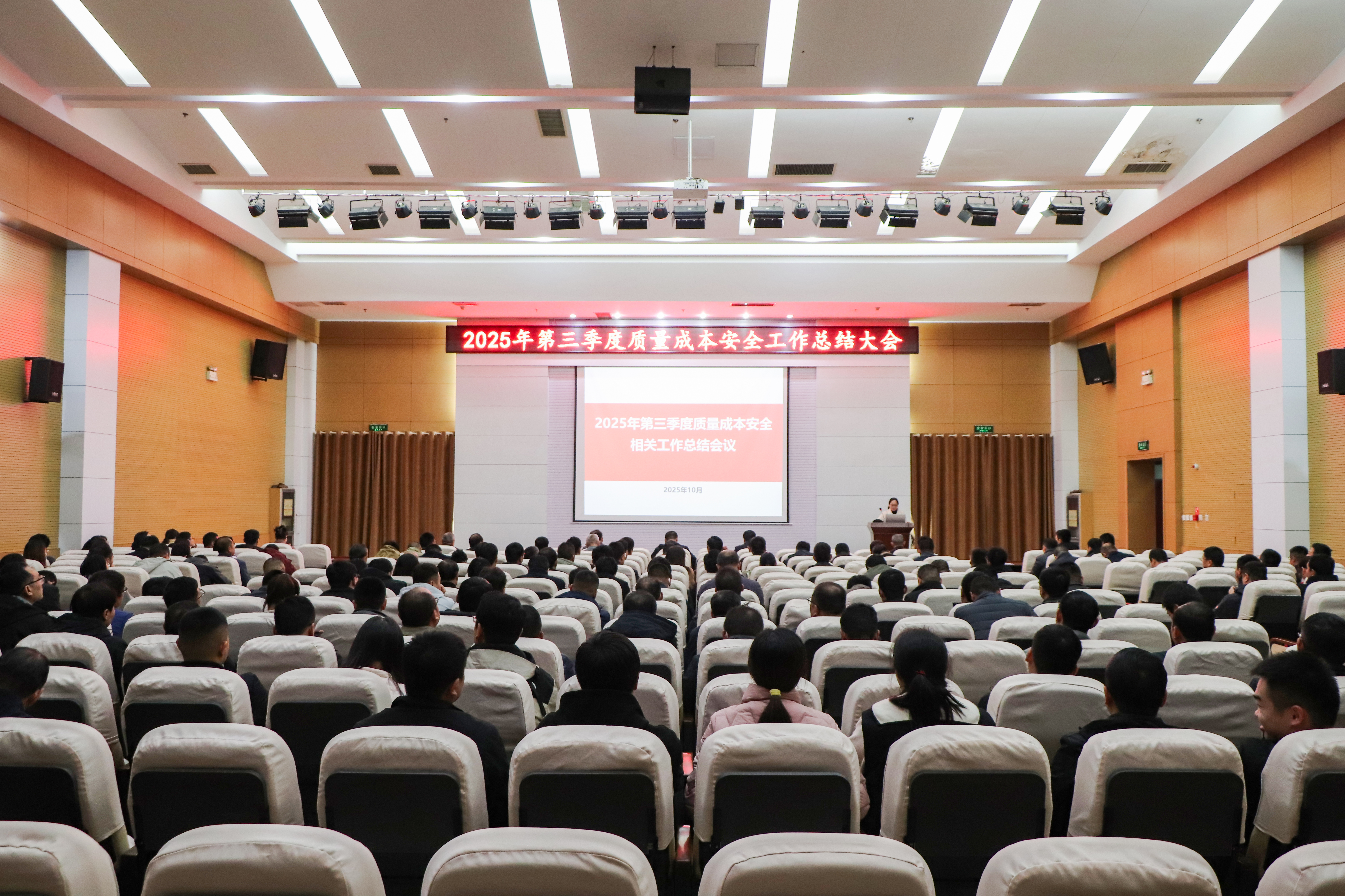 ? ?10月31日,公司第三季度質量成本安全工作總結會議在辦公樓一樓會議室召開??偨浝韽埞饷鞒鱿瘯h并作重要講話,辦公室及人力資源部總經理吳乃森主持會議,生產、質量、供應、工程等部門負責人及250余名管理人員參會,共同復盤三季度工作,部署年末攻堅任務。